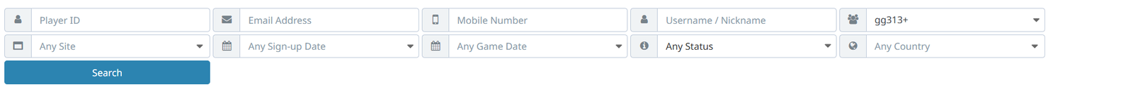 | Player ID | Email Address | Mobile Number | Nickname | Balance | C$ | T$ | Ticket | Casino Bonus | Play Money | Agent | Site | Country | Sign-up Date | Last Game Play Date |
